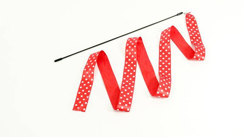 Segure a vareta pela extremidade e “provoque” o gato alternando movimentos ondulatórios suaves e repentinos com a fita bem próxima a ele;